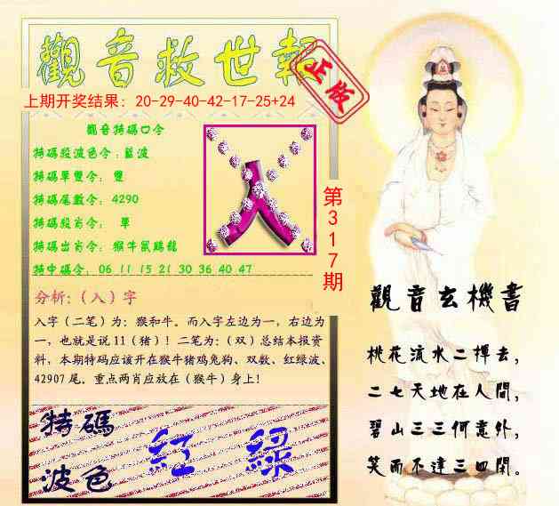 | 317期七肖 | 猴鼠牛兔马蛇狗 | 开:?00中 |